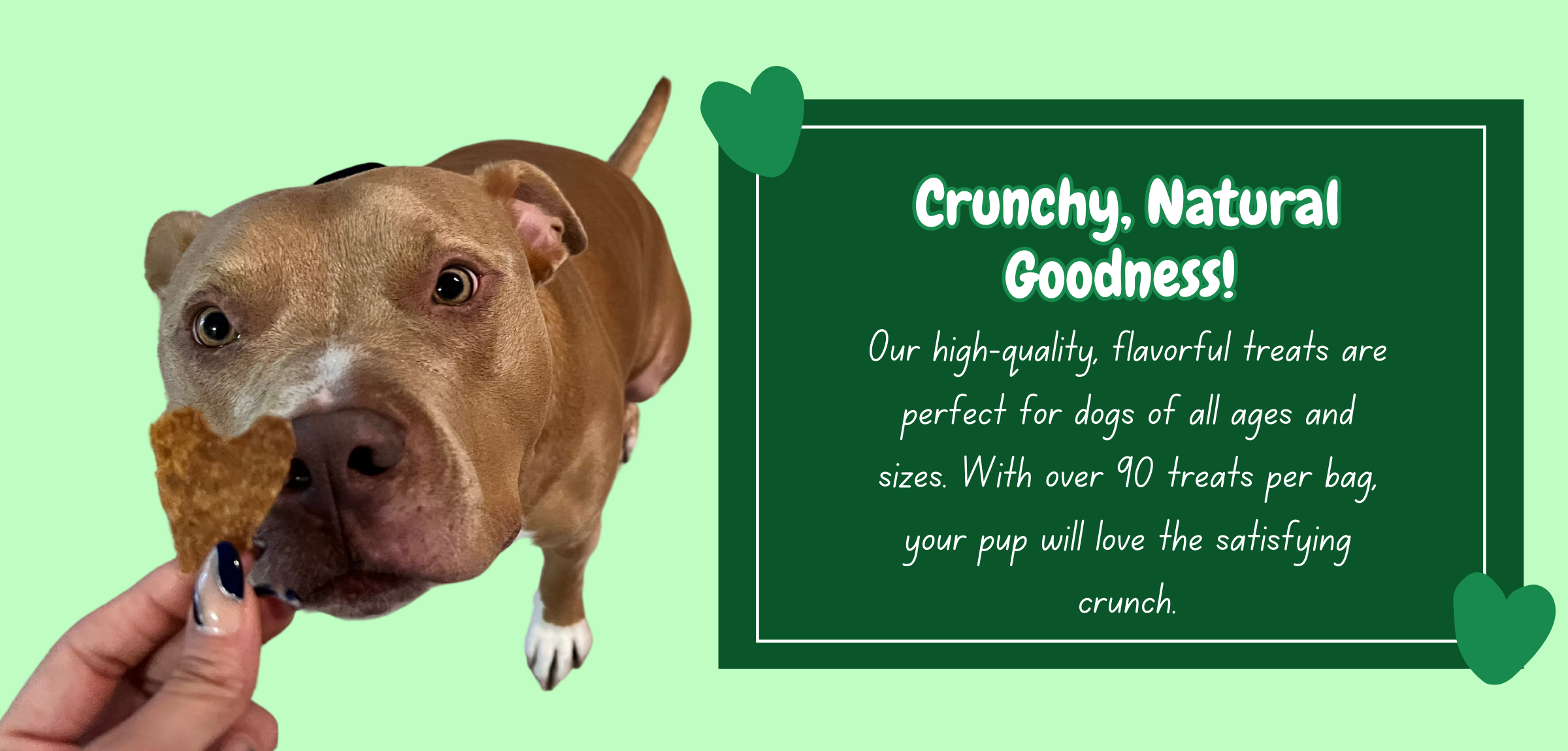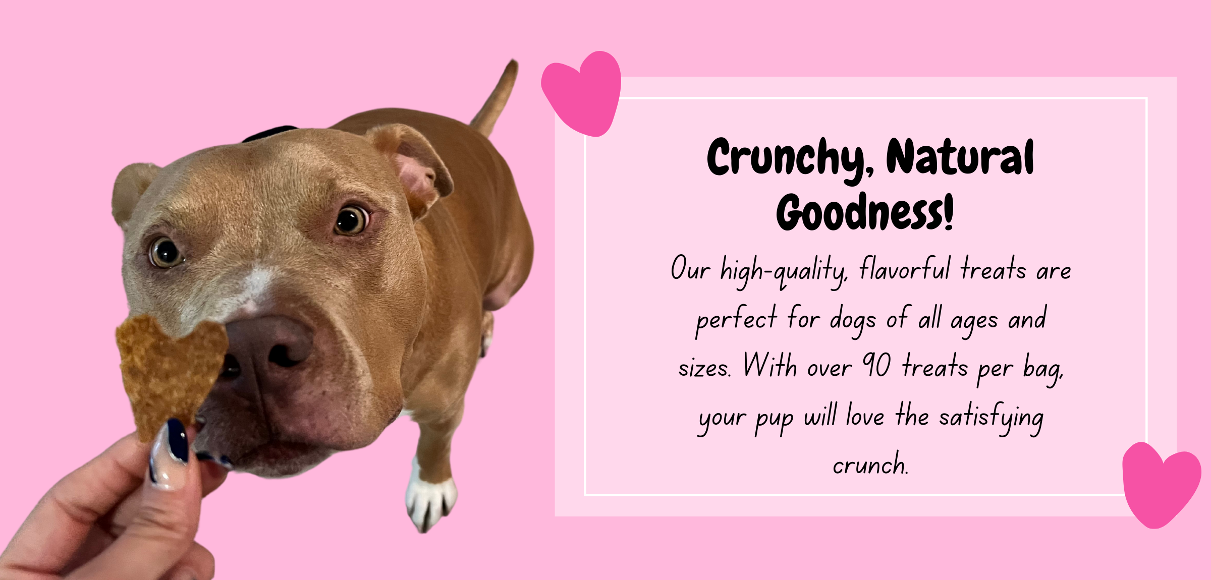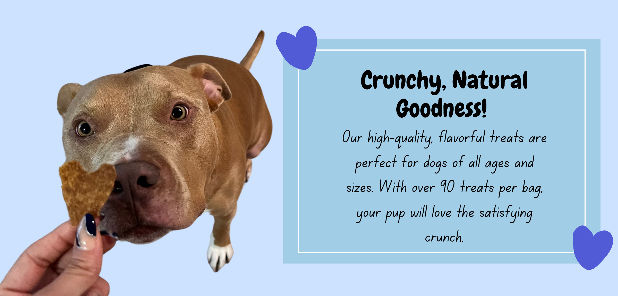 Treat your dog to a satisfying crunch! Our all-natural, thin treats are carefully crafted to be crispy and delicious, making every bite a delightful experience. Watch as your pup enjoys the perfect texture, whether as a snack or a tasty food topper. Every crunch is packed with flavor and love!