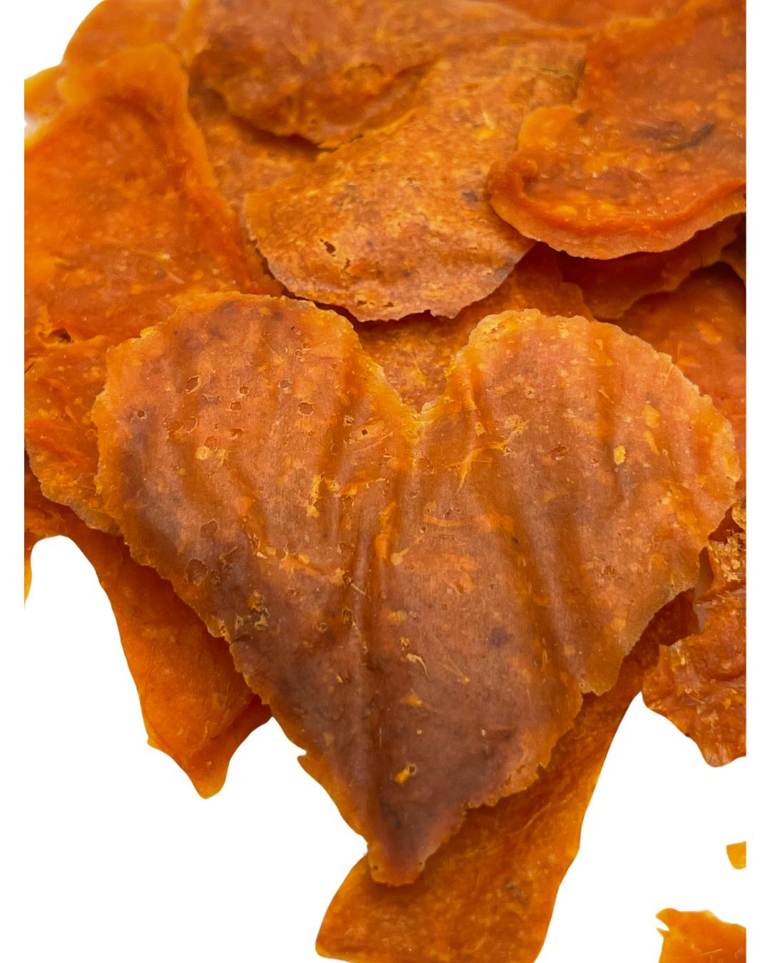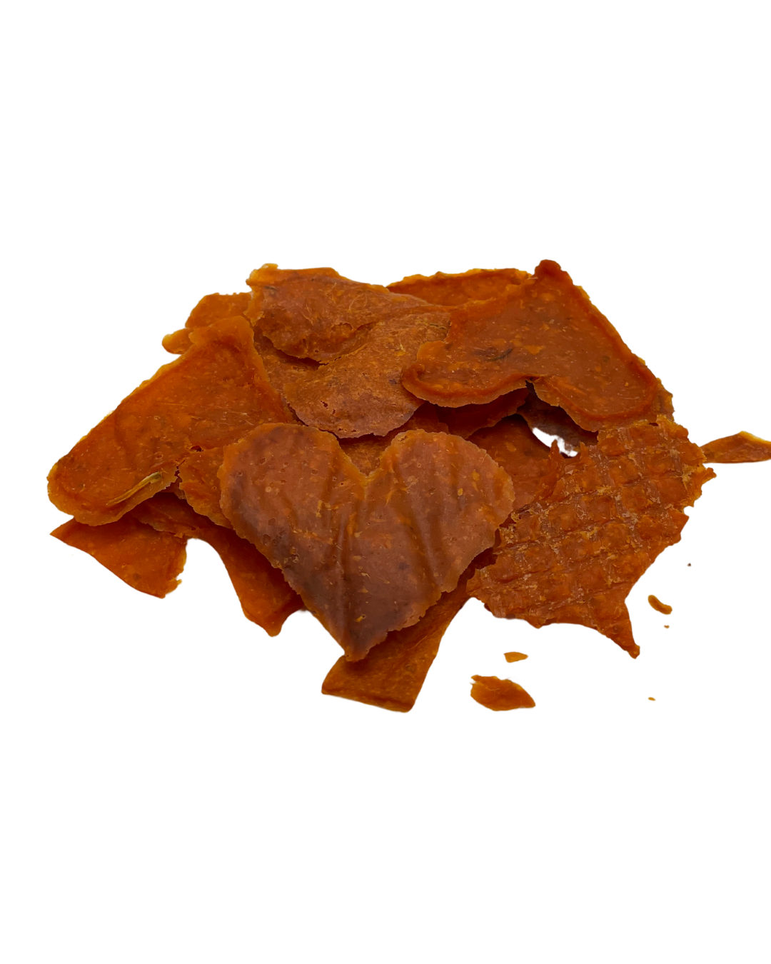 Pawcasso Veggie Crackers are unlike typical veggie treats - these heart-shaped delights boast a thin and crispy texture reminiscent of potato chips, much to the delight of our furry friends. Pawcasso Veggie Crackers offer a low-calorie, nutritious, and irresistibly tasty option for your fur-baby, providing a guilt-free indulgence they'll crave time and time again.